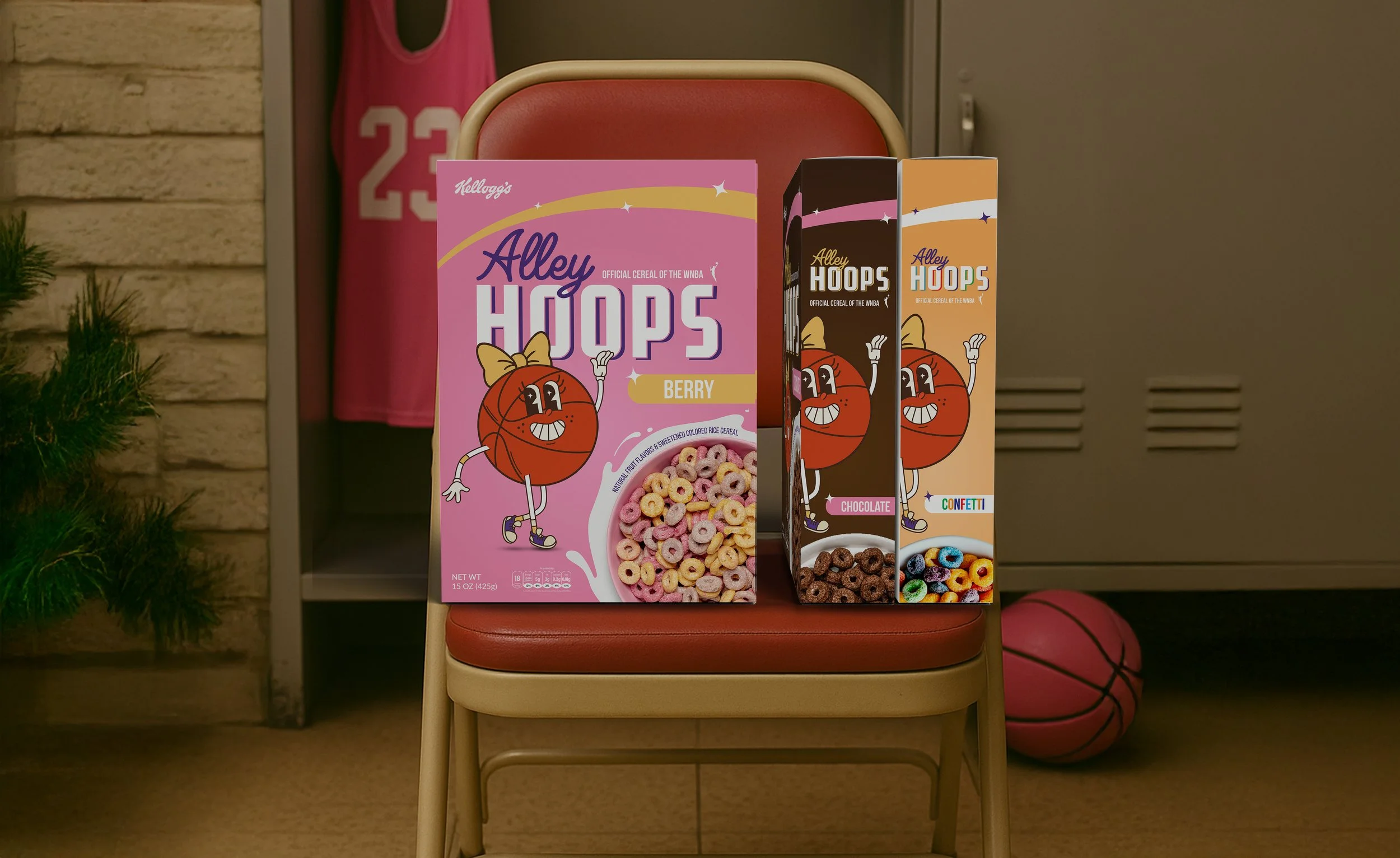 The focus for this project in my Packaging Design class was to create a brand with an illustrated mascot along with the packaging. I chose to create a cereal brand catered towards young female athletes (with a basketball focus). I wanted to give myself a challenge by targeting a demographic I’ve never done before. I named the brand Alley Hoops and made it a sub-brand of Kelloggs for authenticity.